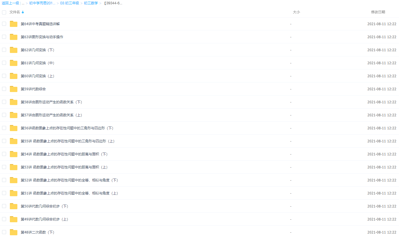 此课件来自学而思网校,【39344-64讲】初三数学年卡提高班(上海沪教版)【朱韬】,包含视频课程和讲义资料 。此课件的主要内容包括: 相似之成比例线段知识点、寒假目标中考系统复习之四边形、寒假目标中考系统复习之二次函数、图形变换与动手操作、寒假目标中考系统复习之一次函数与反比例函数、二次函数的图像及基本性质、寒假目标中考系统复习之代数几何综合、相似之相似三角形的性质与判定 等等视频