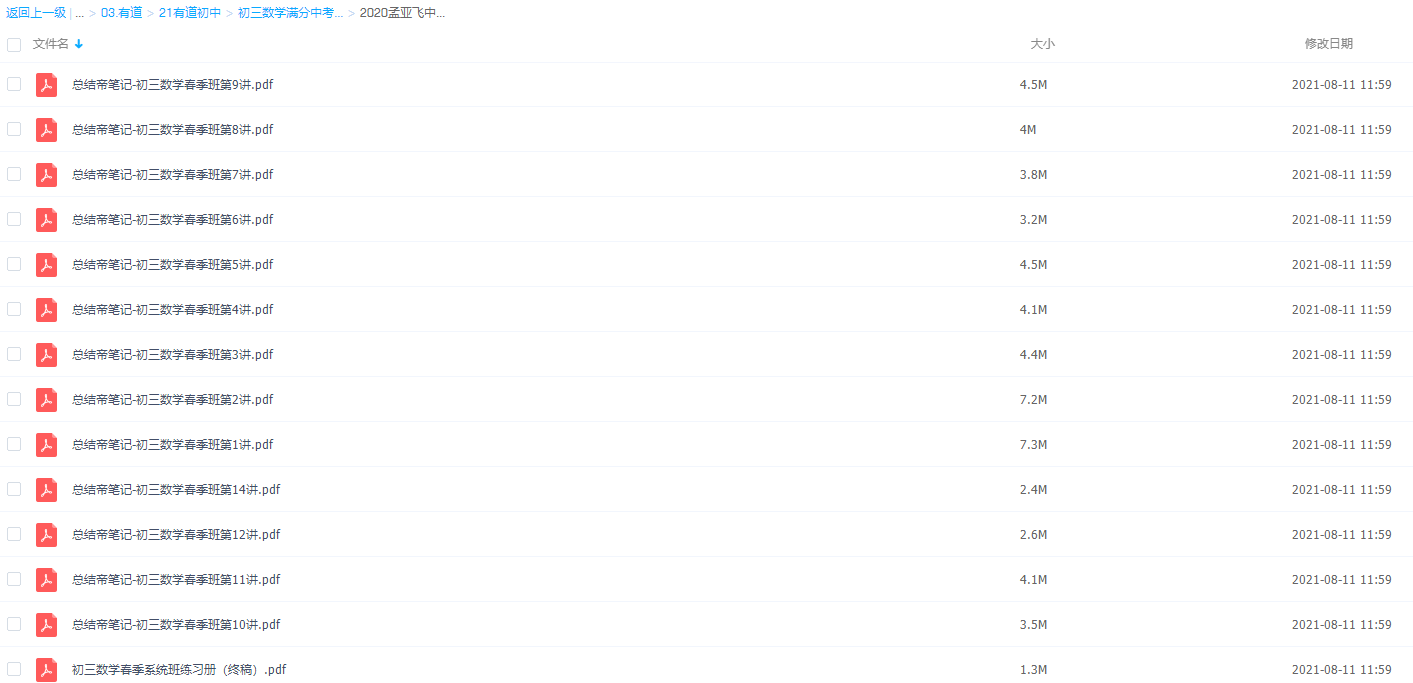 有道孟亚飞 2020 中考数学复习春季系统班(带讲义)