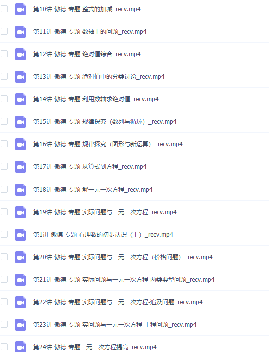 此课件来自简单学习网校,傲德初一数学同步提高上学期课程。此课件主要知识点包括:有理数加减法、有理数乘除法、有理数的乘方、有理数的混合运算、科学记数法与有效数字、代数式、认识整式、整式的加减、数轴上的问题、规律探究、从算式到方程、解一元一次方程、实际问题与一元一次方程、有理数的初步认识、实际问题与一元一次方程、一元一次方程提高、认识立体图形、直线、射线、线段、认识角、与角相关的概念、两类角度计算问题、有理数的初步认识、当几何遇到代数、期中期末串讲。