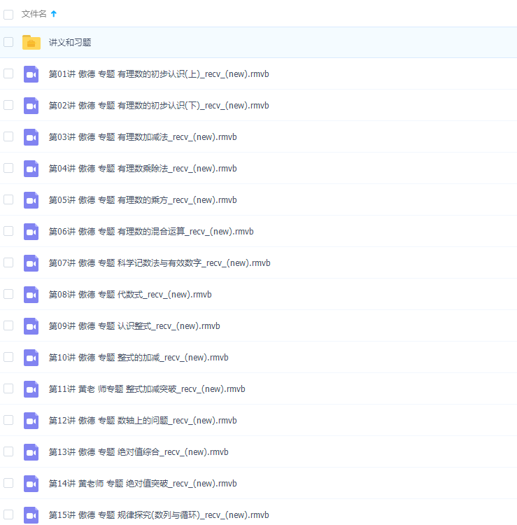 此课件来自简单学习网,傲德初一数学满分冲刺上学期课程。此课件主要知识点包括:有理数的初步认识、有理数加减法、有理数乘除法、有理数的乘方、科学记数法与有效数字、代数式、认识整式、整式的加减、整式加减突破、数轴上的问题、规律探究(数列与循环)、规律探究提高篇、从算式到方程、解一元一次方程、实际问题与一元一次方程、认识立体图形、直线、射线、线段、与角相关的概念、两类角度计算问题、当几何遇到代数、期中期末串讲。