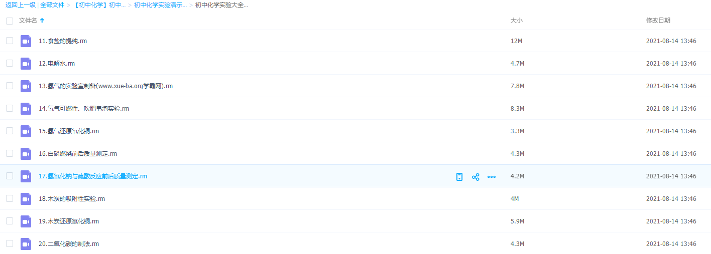 很多学生不喜欢化学但是喜欢做实验,初中化学实验演示视频大全11-20食盐提纯电解水氢气还原氧化铜,实验做好对课程也有帮助!