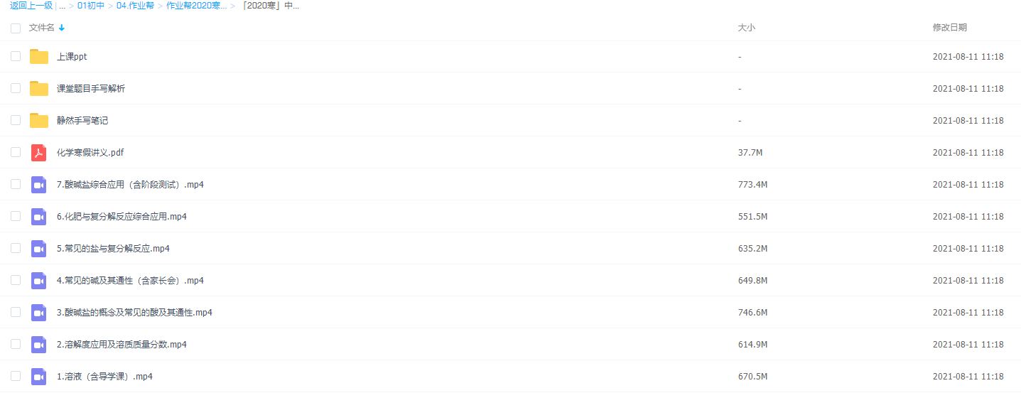 此课件来自作业帮网校,杨静然2020寒假中考化学冲顶班(带讲义)。此课件主要知识点包括:酸碱盐综合应用(含阶段测试) 、化肥与复分解反应综合应用、常见的盐与复分解反应、常见的碱及其通性、酸碱盐的概念及常见的酸及其通性、溶解度应用及溶质质量分数等视频