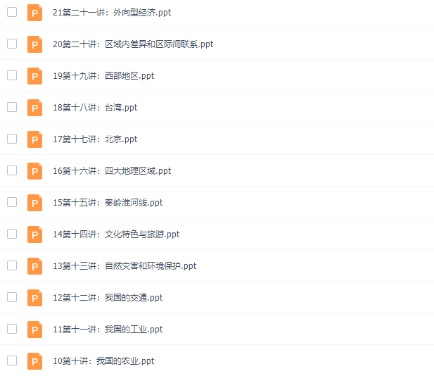 此课件来自学科网杨晓松中国地理高清视频课程,此课件主要知识点包括:辽阔的疆域、我国的行政区划、民族、人口和城市、我国的地形、我国的气候、我国的河流、土地资源、水资源、自然要素间关系、我国的农业、我国的工业、我国的交通、自然灾害和环境保护、文化特色与旅游、秦岭淮河线等等视频课程。。。
