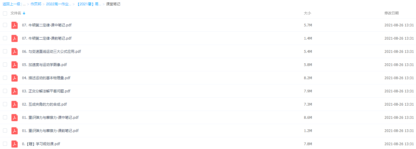 此课件来自作业帮网校,高一胡婷物理尖端班视频课程,包含视频课程和讲义资料。 主讲胡婷老师善于挖掘学生思维盲区,将繁琐步骤总结为技巧大招,让学生不自觉爱上课堂。此课件主要知识点包括:匀变速直线运动三大公式应用、加速度与运动学图像、描述运动的基本物理量、牛顿第二定律、重识弹力与摩擦力等视频。