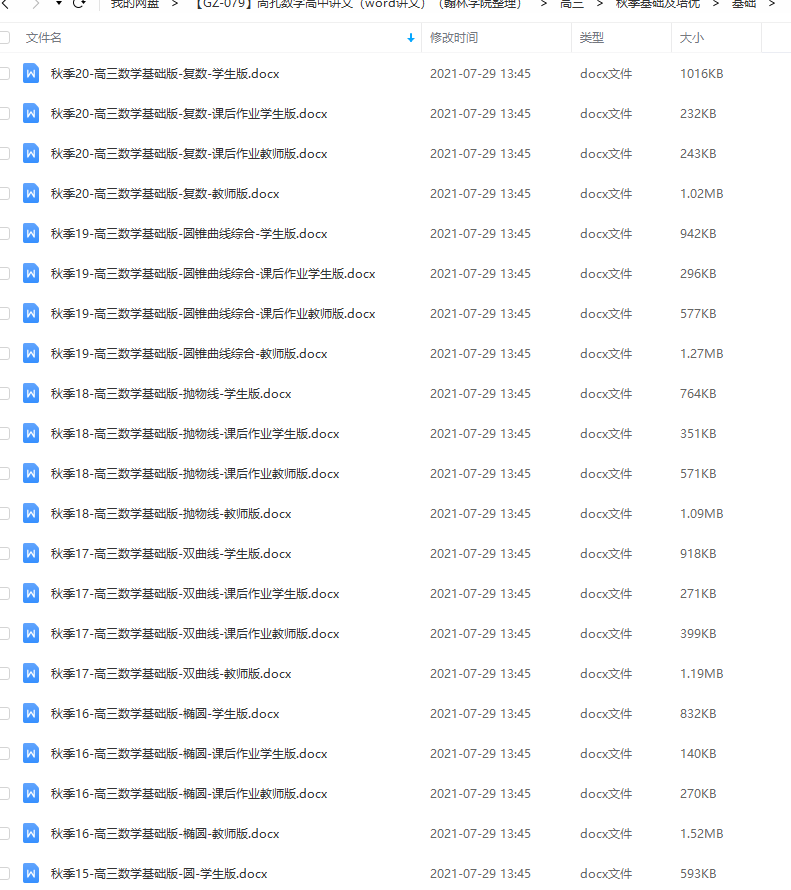 尚孔数学高中讲义word讲义高三秋季资源课程基础班