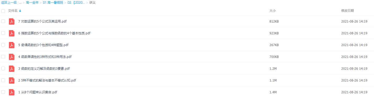 此课件来自作业帮网校,2020刘天麒暑假高一数学尖端班视频,包含视频课程和讲义资料 。主讲刘天麒老师以最大的热情,努力让自己的感染力穿透屏幕,影响更多的孩子。此课件主要知识点包括:五种不等式的解法与基本不等式认知、函数的定义巧解及函数的3要素、函数单调性的3种形式和3种用法、奇偶函数的3个性质和4种题型、指数函数的5个公式与指数函数的个基本性质、.对数运算的5个公式及其运用等视频