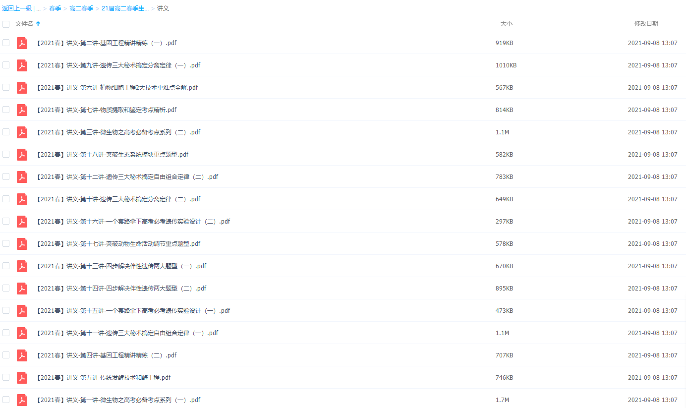 此课件来自作业帮网校,2021作业帮高二春季生物段瑞莹尖端直播课,包括课程视频回放以及资料讲义。主讲段瑞莹老师的课程中渗透培养学生“构建知识体系”的生物学习能力,教授学生合理“分类刷题”的做题练习方法,实现生物稳步提升,高考满分。打破生物“背”的旧观念,用清晰的课程逻辑,搭配简单易用的方法大招,实现快速解决高考生物难题。此课件知识点主要包括:遗传三大秘术搞定分离定律、重点知识总结和题型精炼、物质提取和鉴定考点精析、植物细胞工程、传统发酵技术和酶工程、基因工程精讲精练、微生物之高考必备考点系列和基因工程精讲精练。