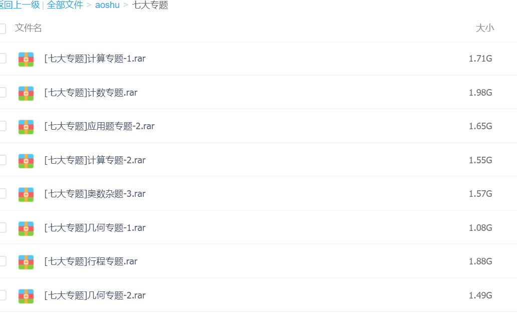 奥数7大专题,内容全面,20g视频 声明:本站资源来自会员发布以及互联网公开收集,不代表本站立场,仅限学习交流使用,请遵循相关法律法规,请在下载后24小时内删除。 如有侵权争议、不妥之处请联系本站删除处理! 请用户仔细辨认内容的真实性,避免上当受骗!