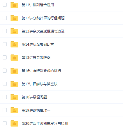 此课件来自高思网校,小学数学四年级下册竞赛数学同步课程20讲。此课件主要知识点包括:小数等等运算技巧、多位数巧算、简单平均数、多组对象的平均数、复杂竖式、横式问题、格点图形的计算、割补法巧算面积、排练组合公式等等视频课程,此课件对启发小学生学习数学科目起到了很好的作用,并训练孩子的数学思维和思考方式。
